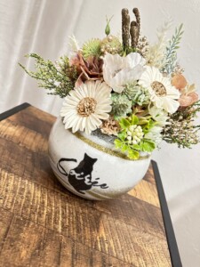 文字をお砂で描いたり、花器の中にスプーン1本でデザインして好きなテイストのフラワーアレンジや観葉植物を入れたりと、サンドアートって色んな楽しみ方ができます。